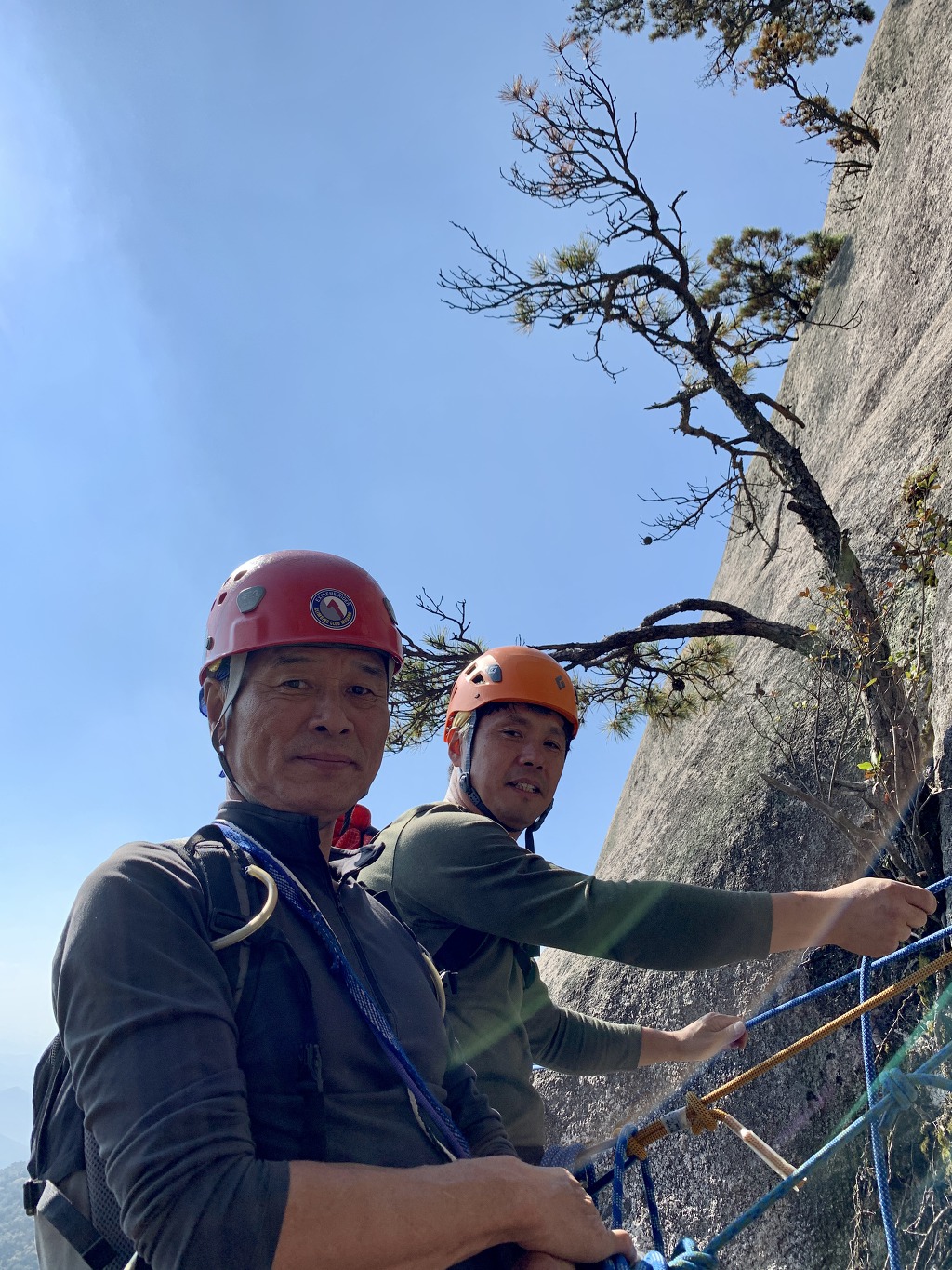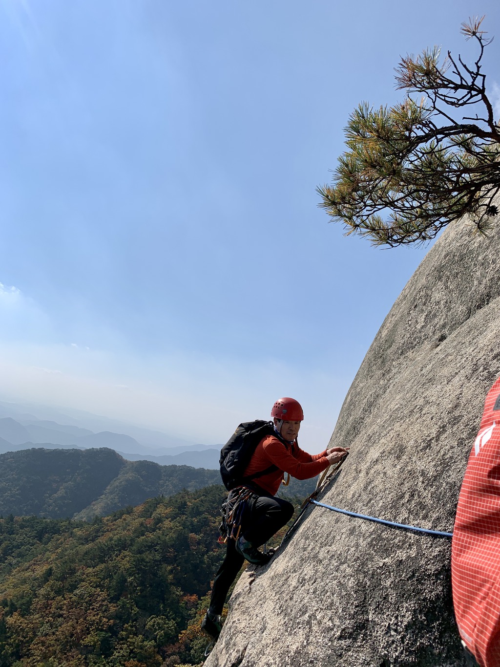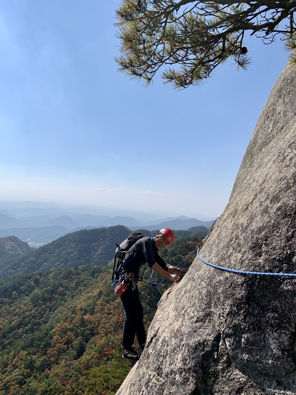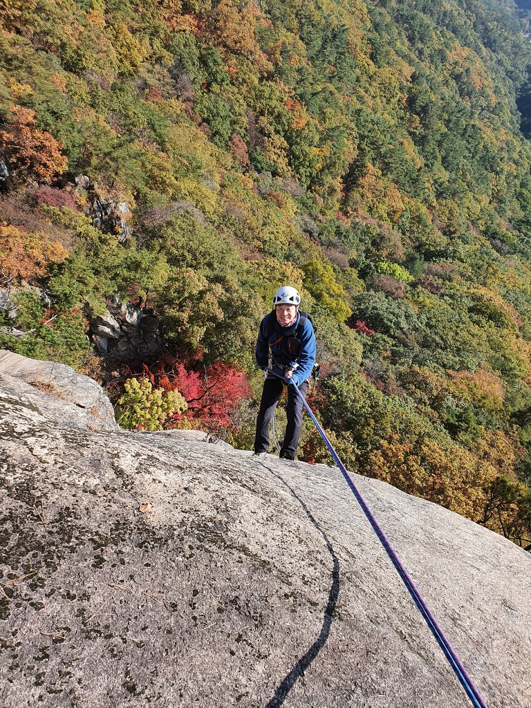 공중에서 잠시 정지중인 나~ 나의 하강을 마지막으로 등반이 완전히 끝나며 염불암을 향해 내려간다.
