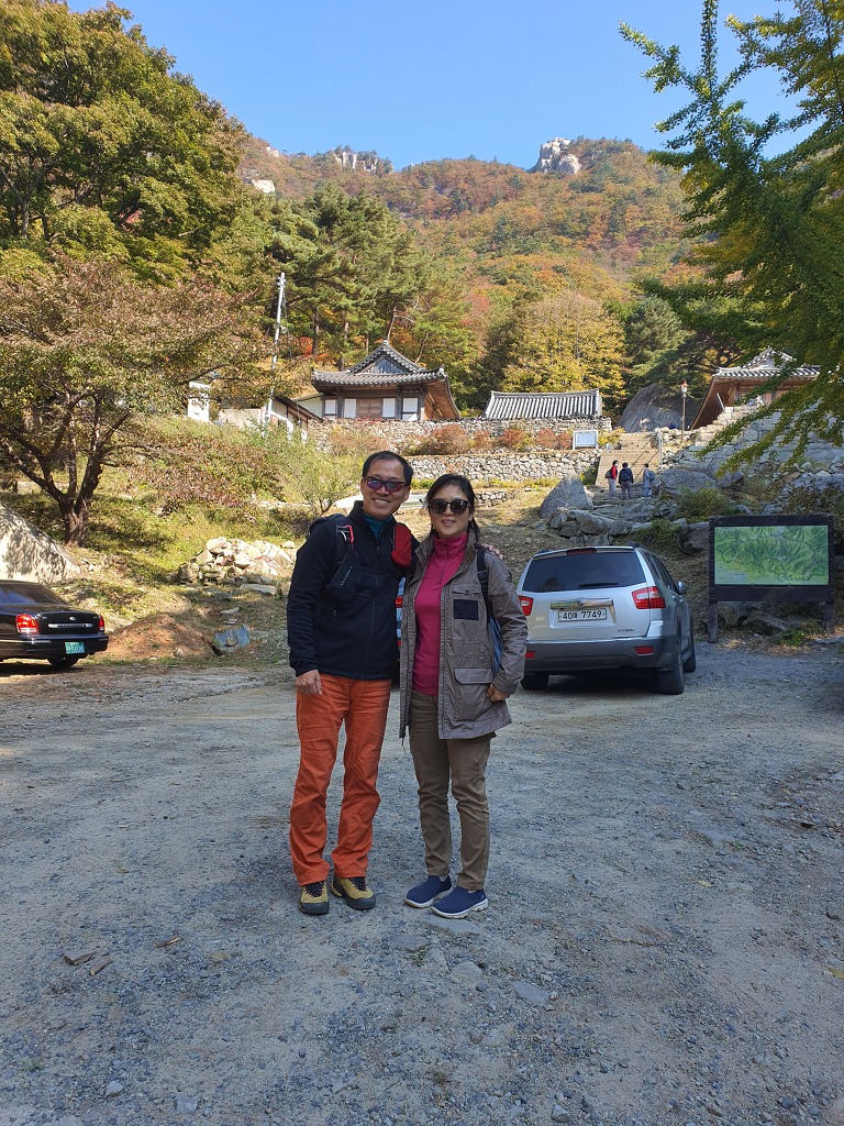 염불암을 배경으로 선 심광섭후배와 제수씨~ 십여년전 토왕폭 등반 때 다친 발목이 아직도 불편한 장애인
