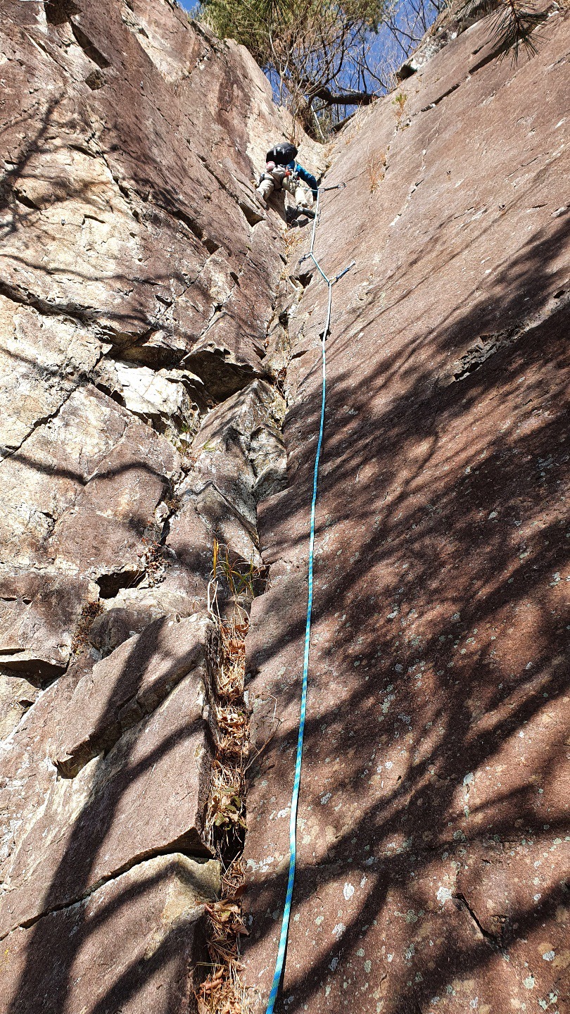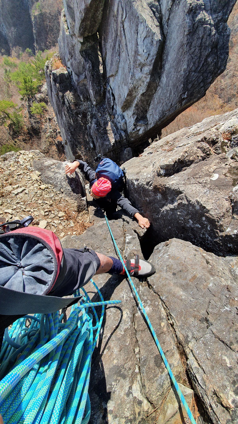 첫피치의 디에드르 크랙을 등반중에~ 오랜만의 리딩이라 긴장도 되고~