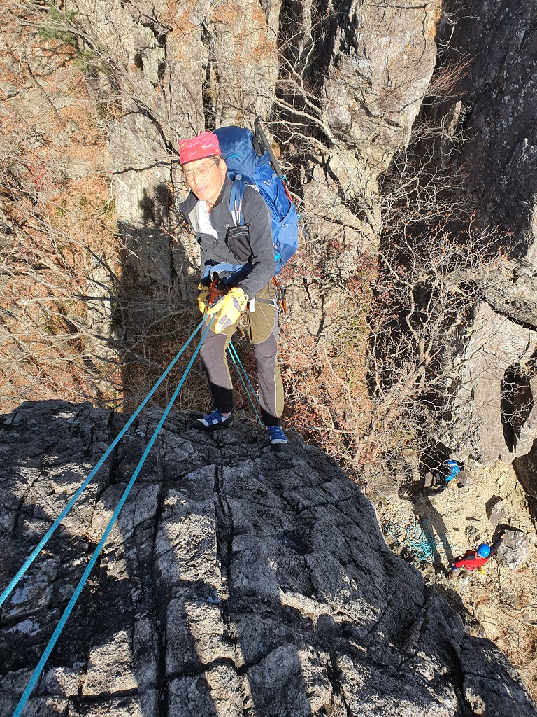 사진이 바뀌었네~ 하강 자일을 설치중~