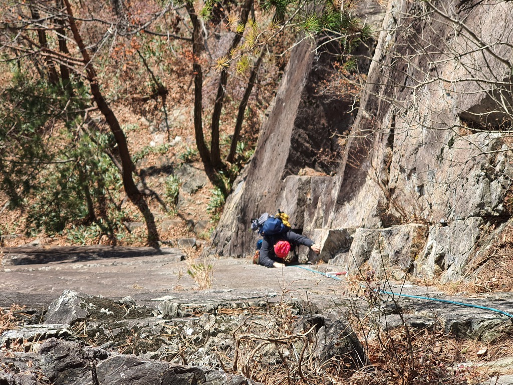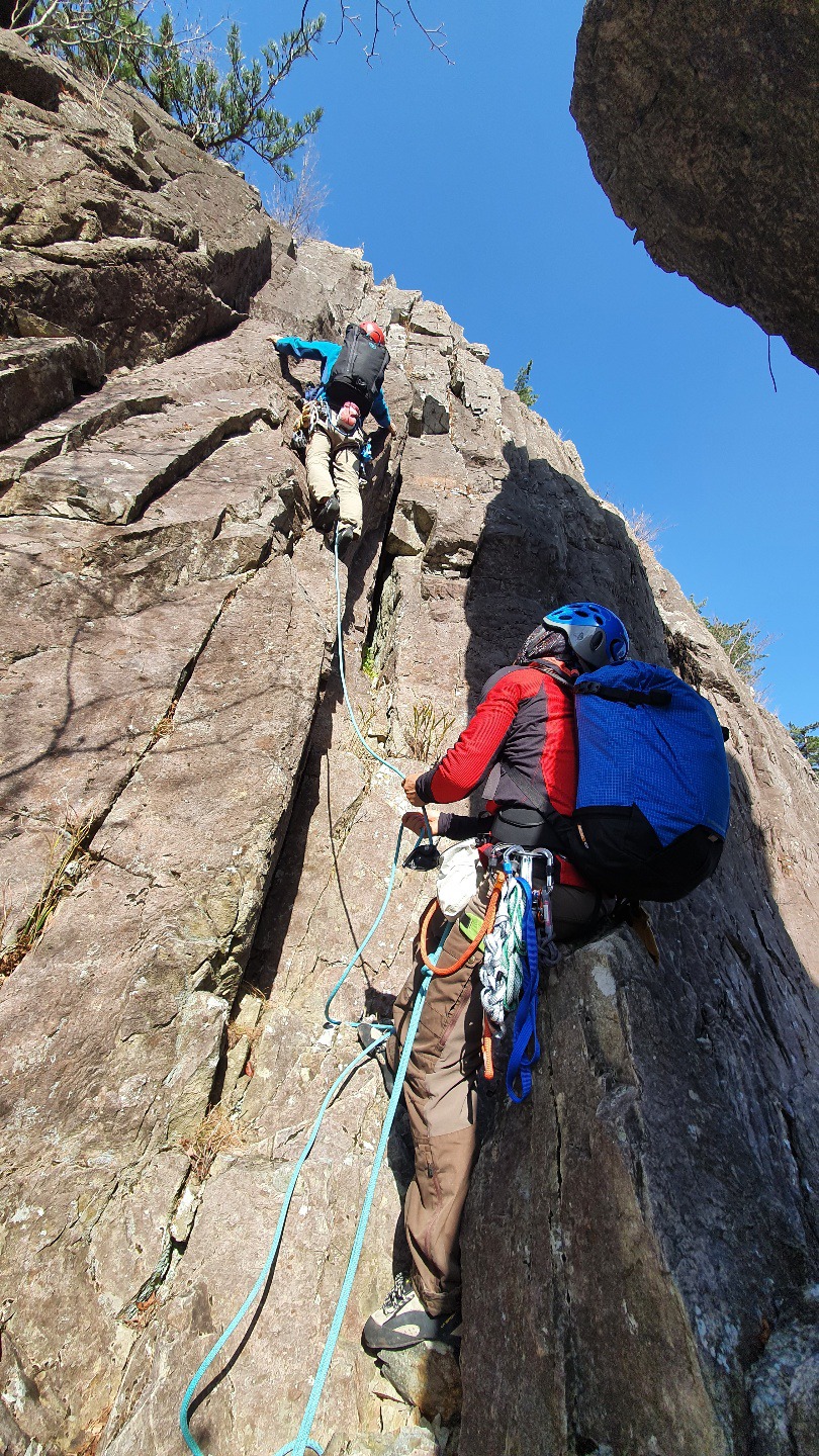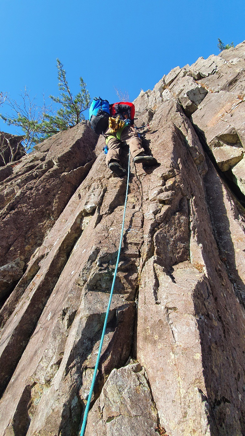 마지막 피치를 오른다~ 어려운 구간은 아니지만 확보물 설치가 마땅치 않아서 조심해서 올랐다.