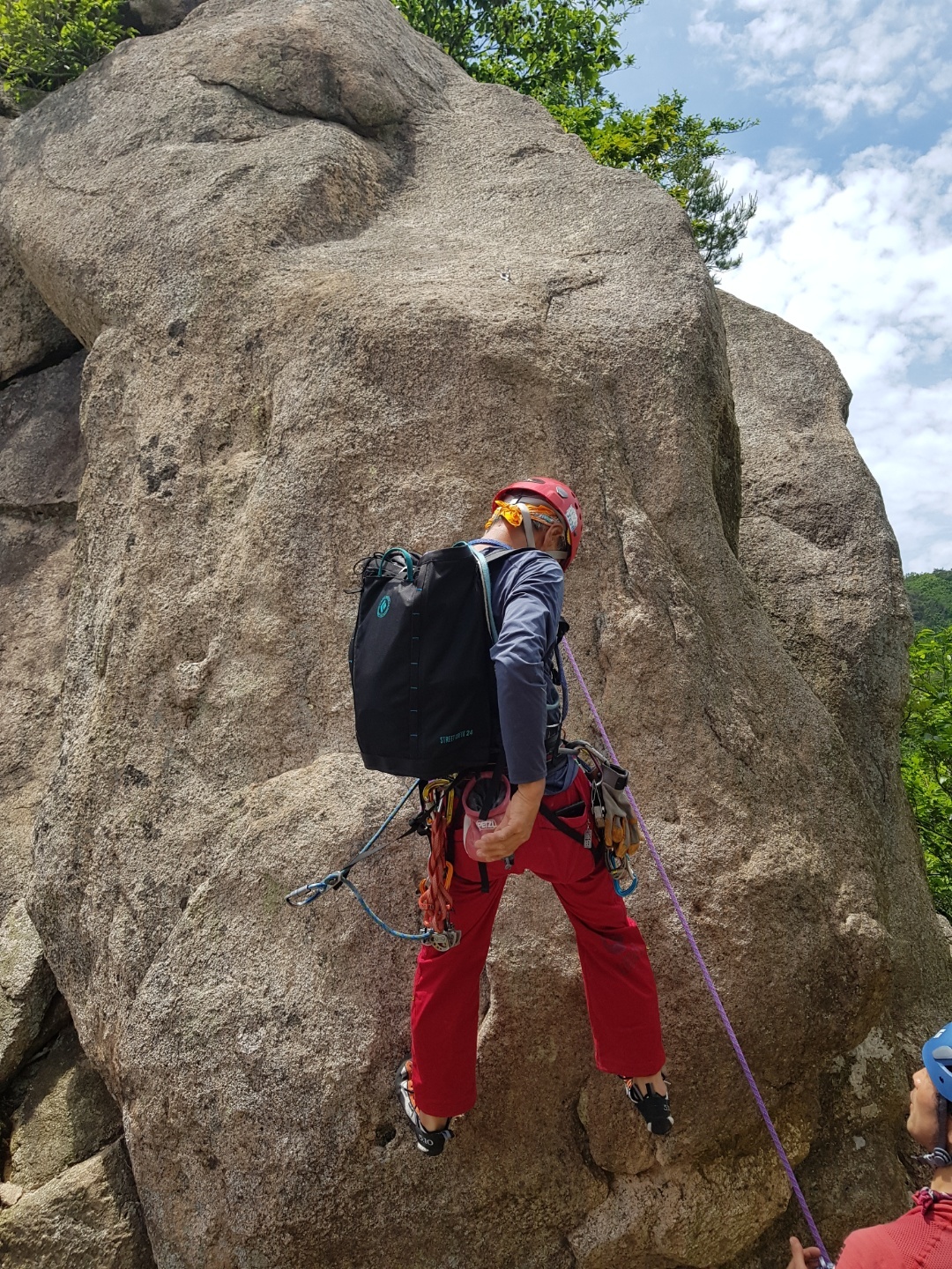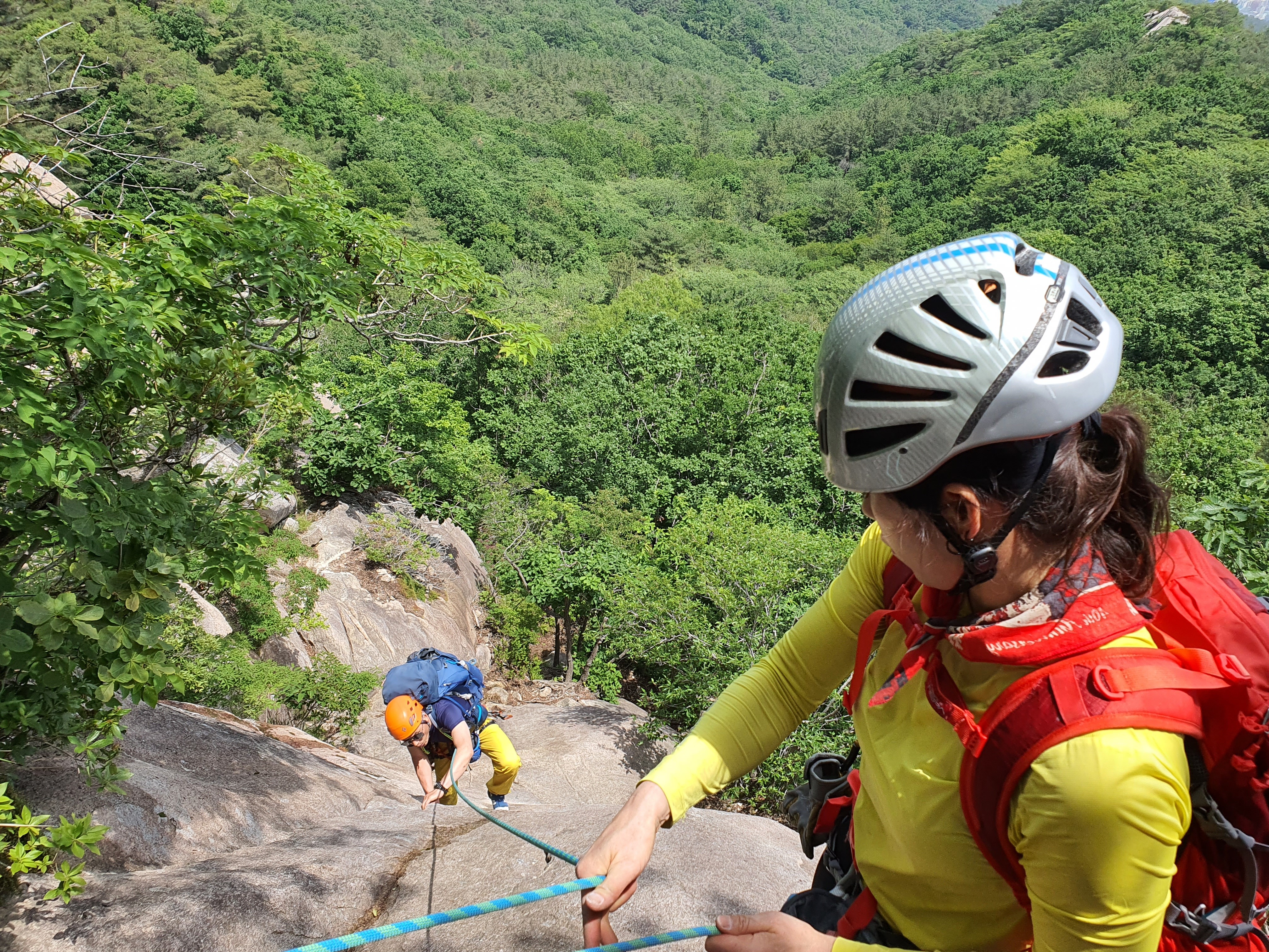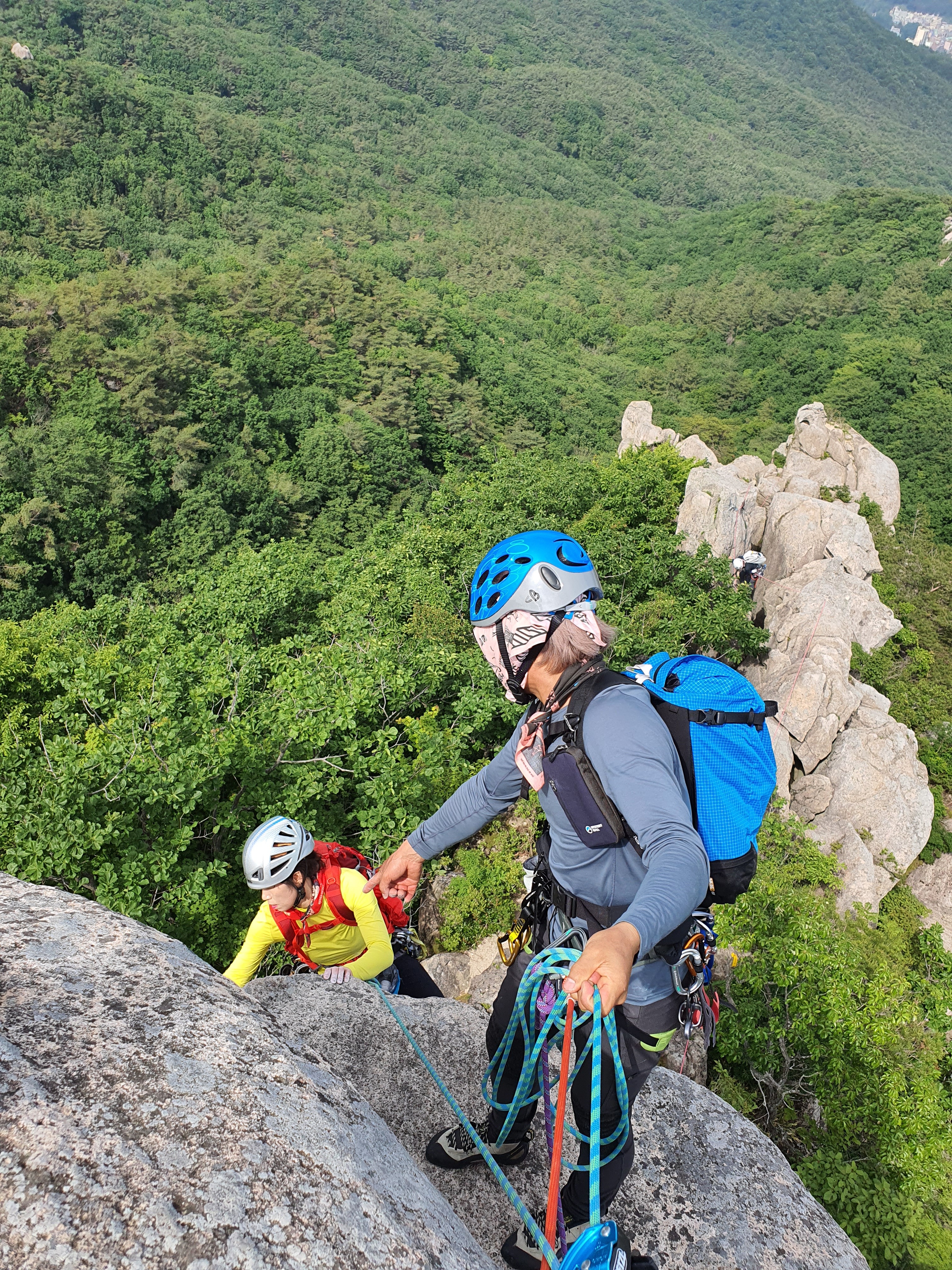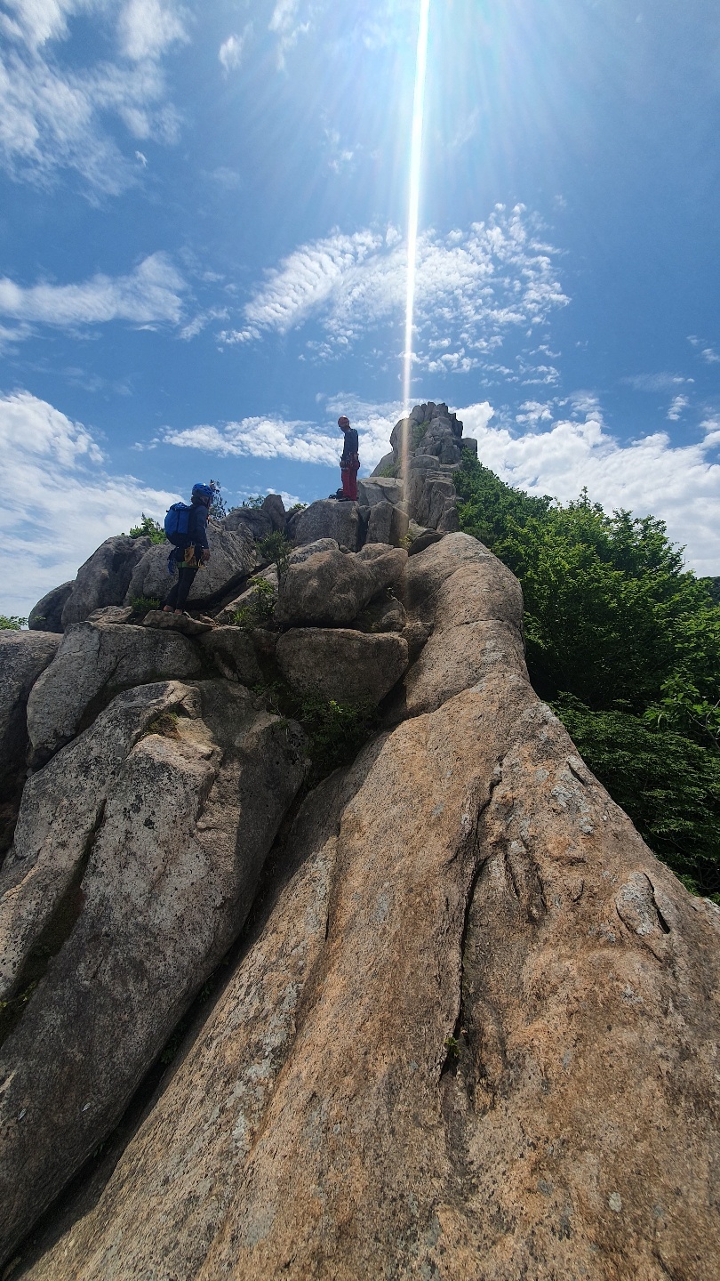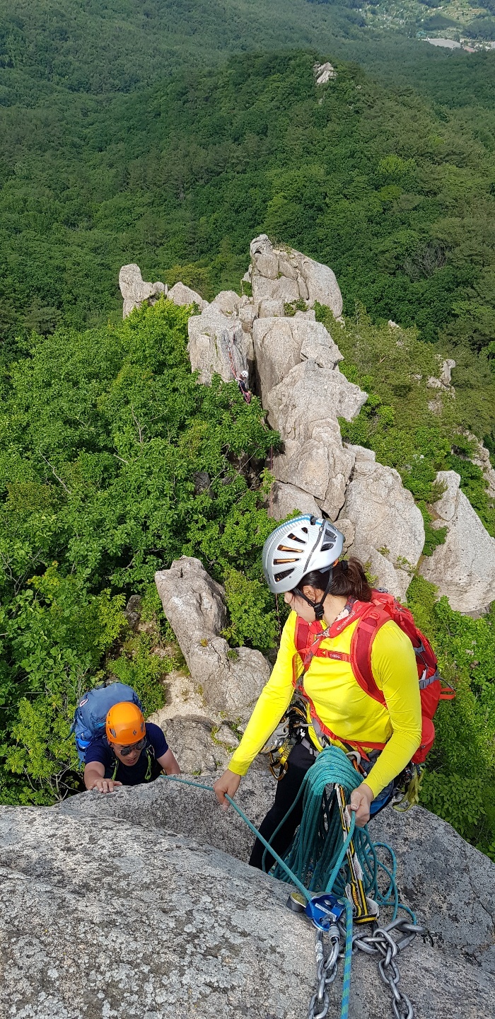 여기만 넘어서면 이제 등반은 거의 끝이 나고~ 마지막 뜀바위와 하강만 하면 종료가 된다.