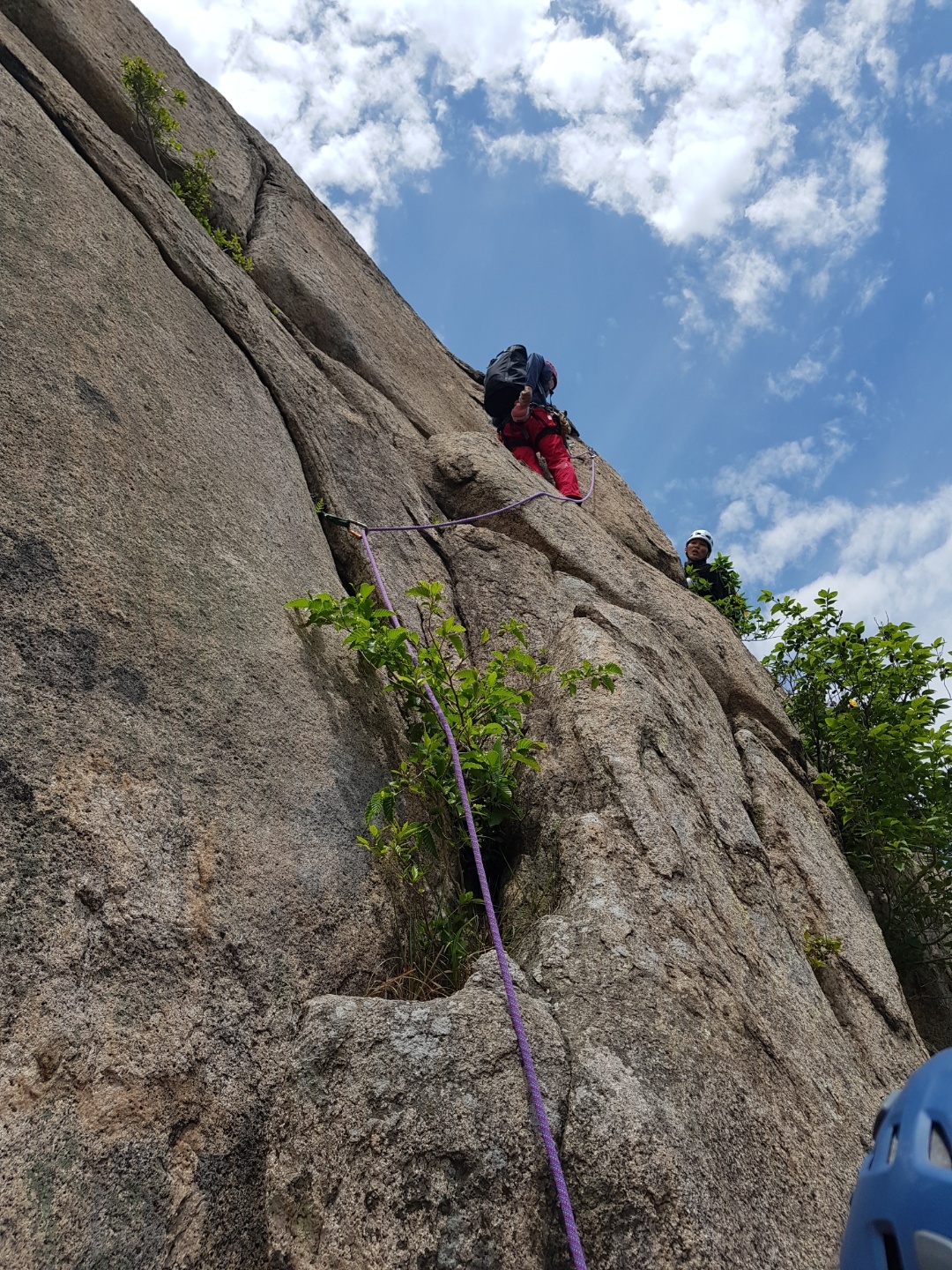 두번째 피치의 직벽 구간을 등반중인 대전팀~ 우리도 이 직벽을 등반 할려고 했으나 그팀의 인원이 많은데다