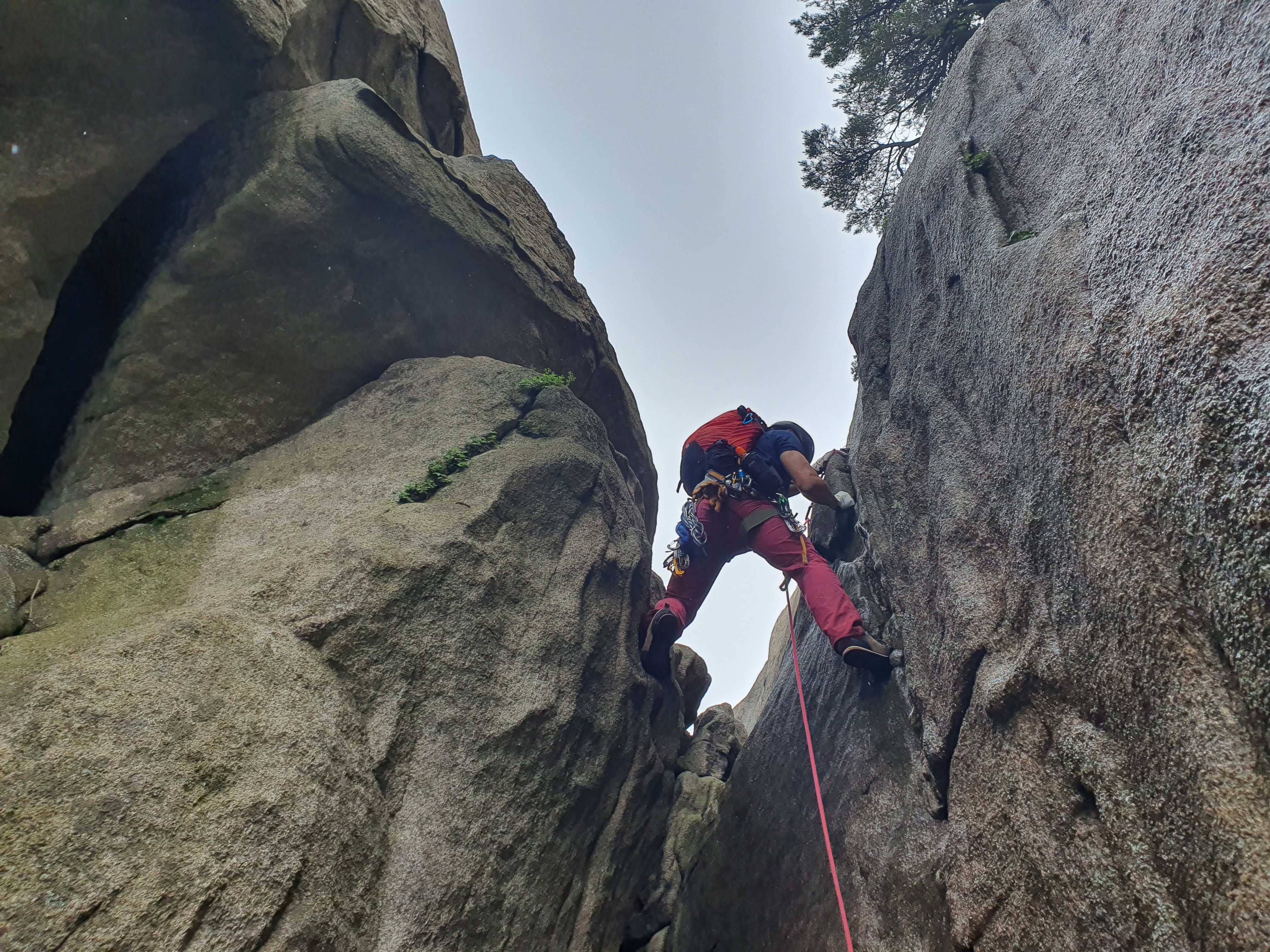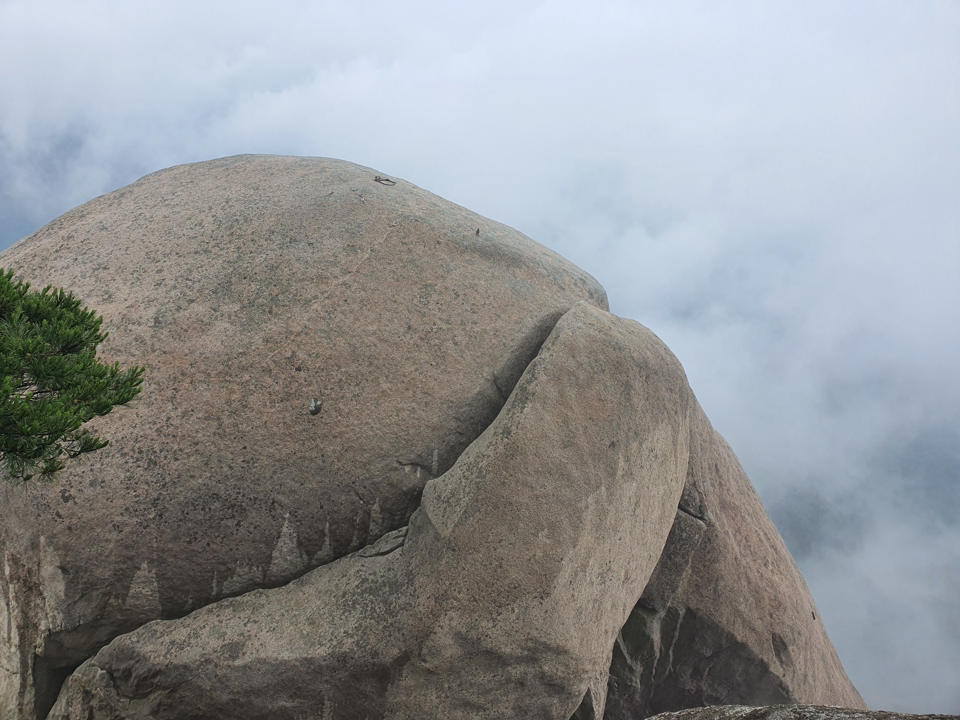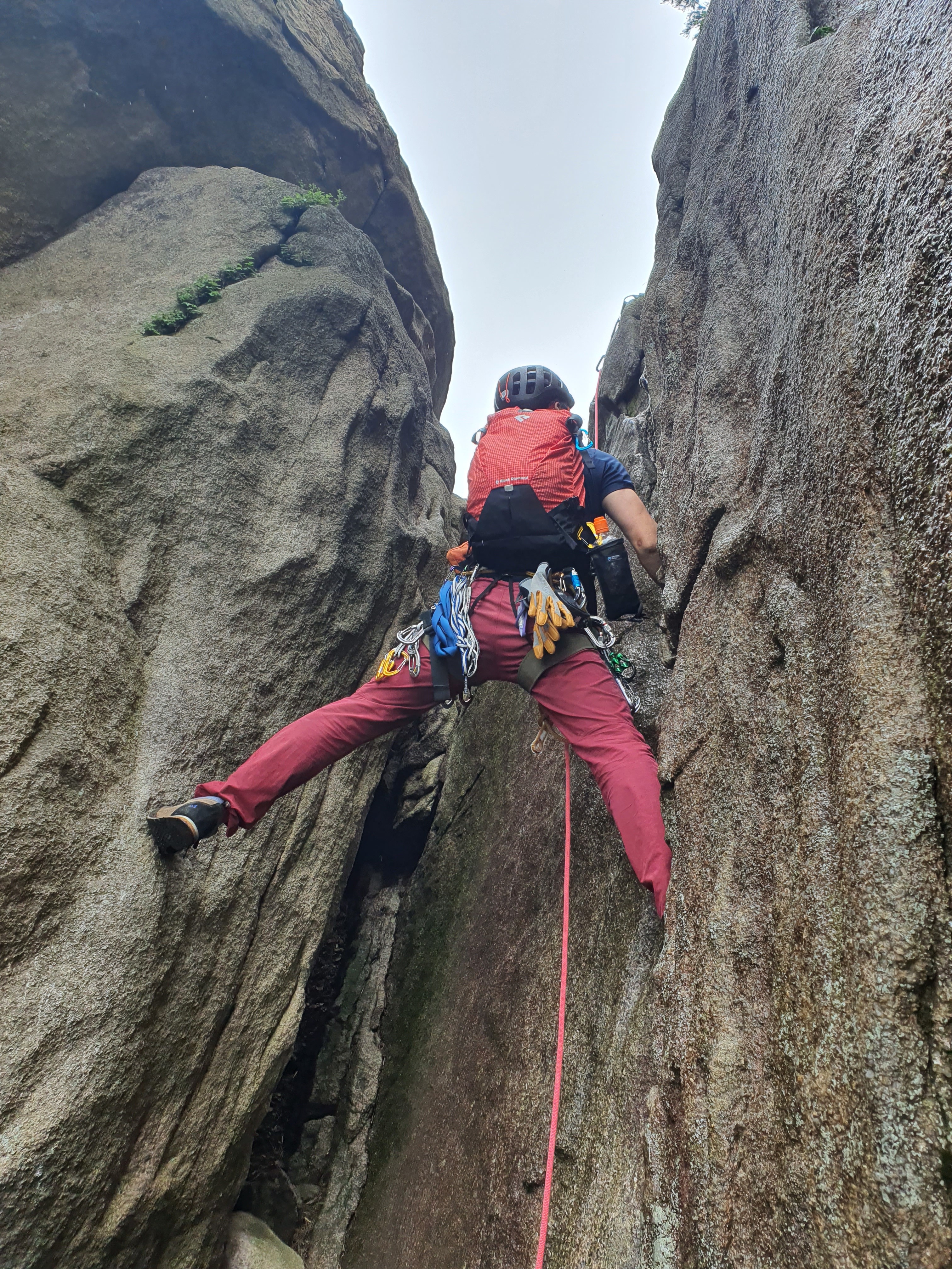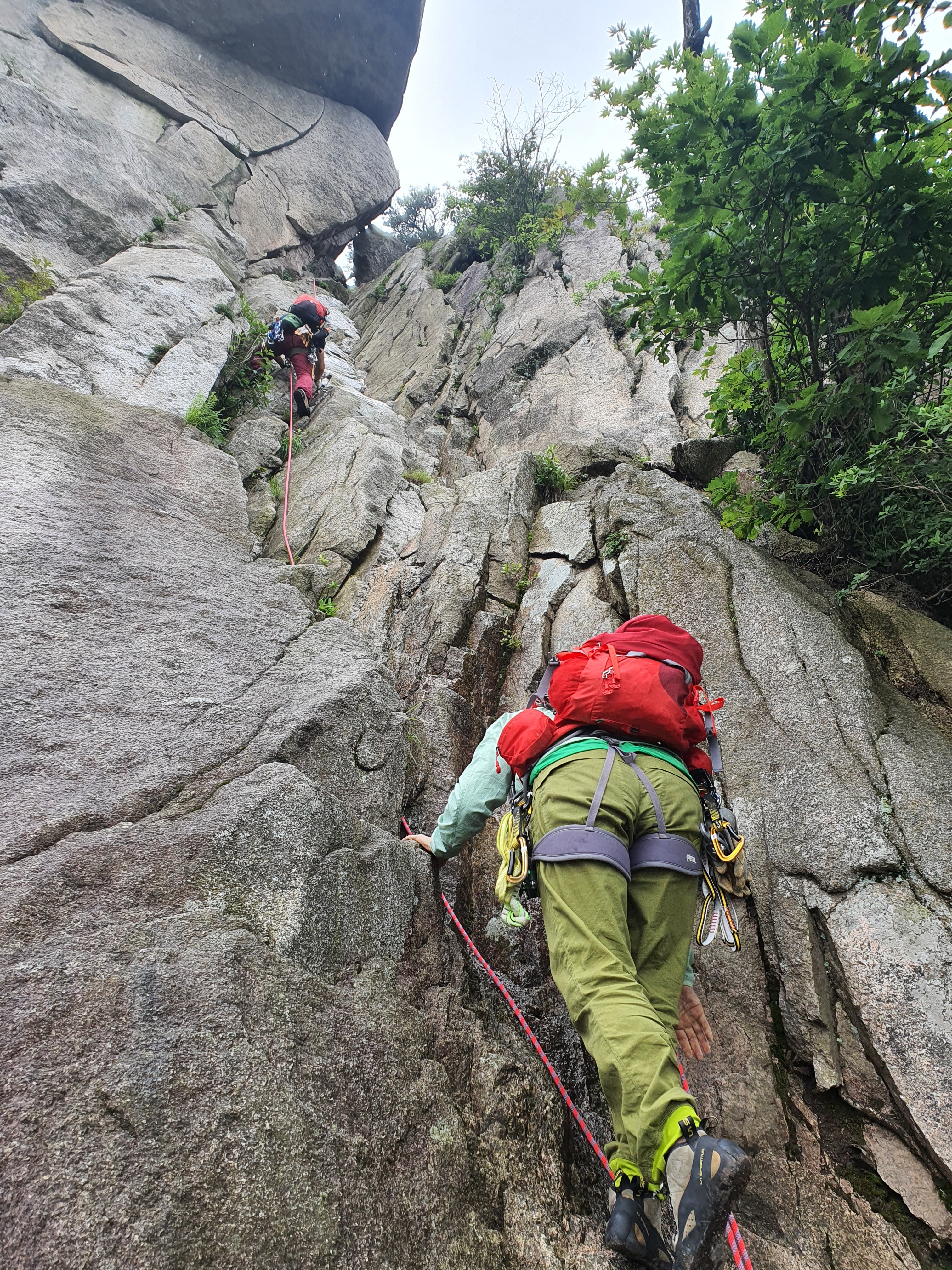 비에 젖은 참기름 바위는 얼마나 미끄러운지 사투끝에 밑에서 후배들이 발을 받쳐주어 겨우 내가 먼저 올랐다.