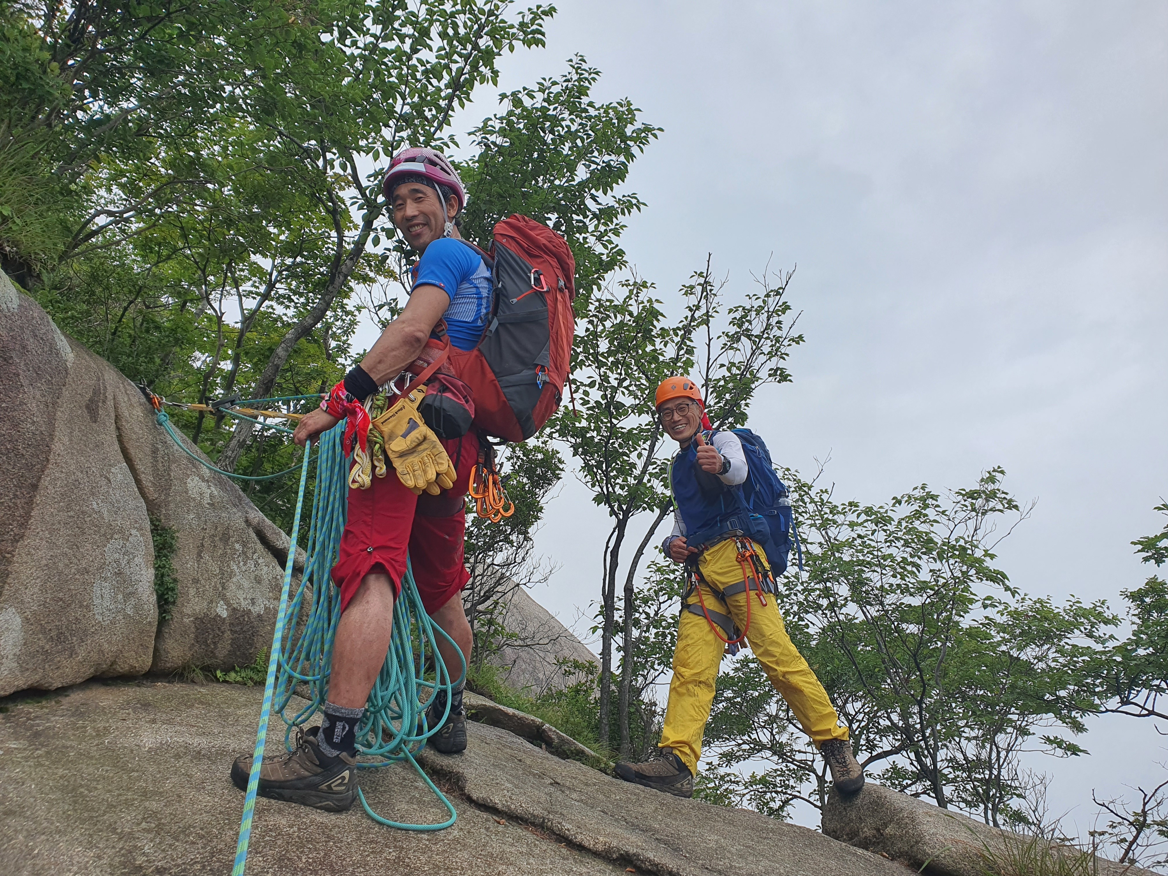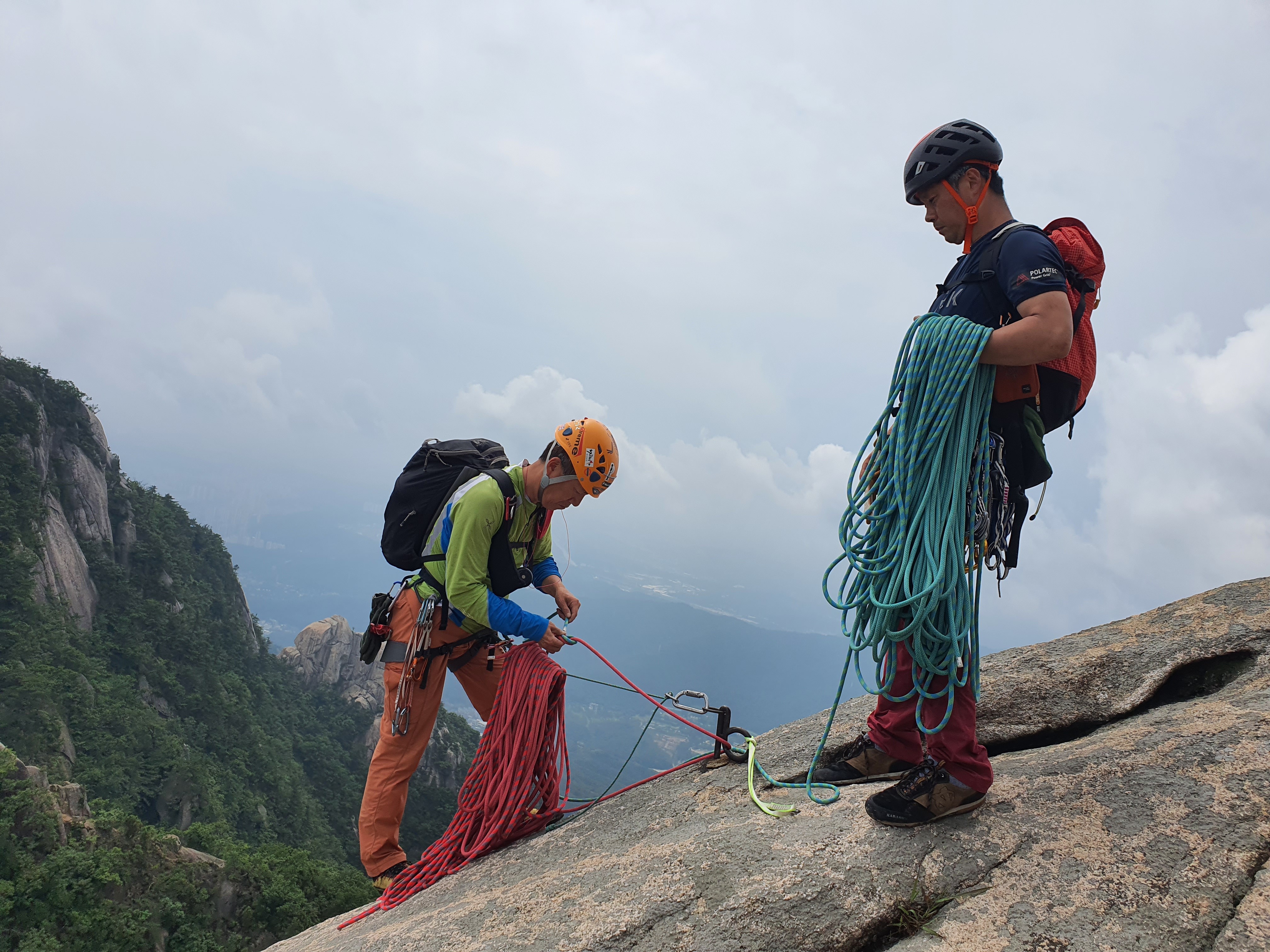 올랐으면 다시 내려가야 하는 법~ 하강 준비중인 광섭 후배와 창호 후배~