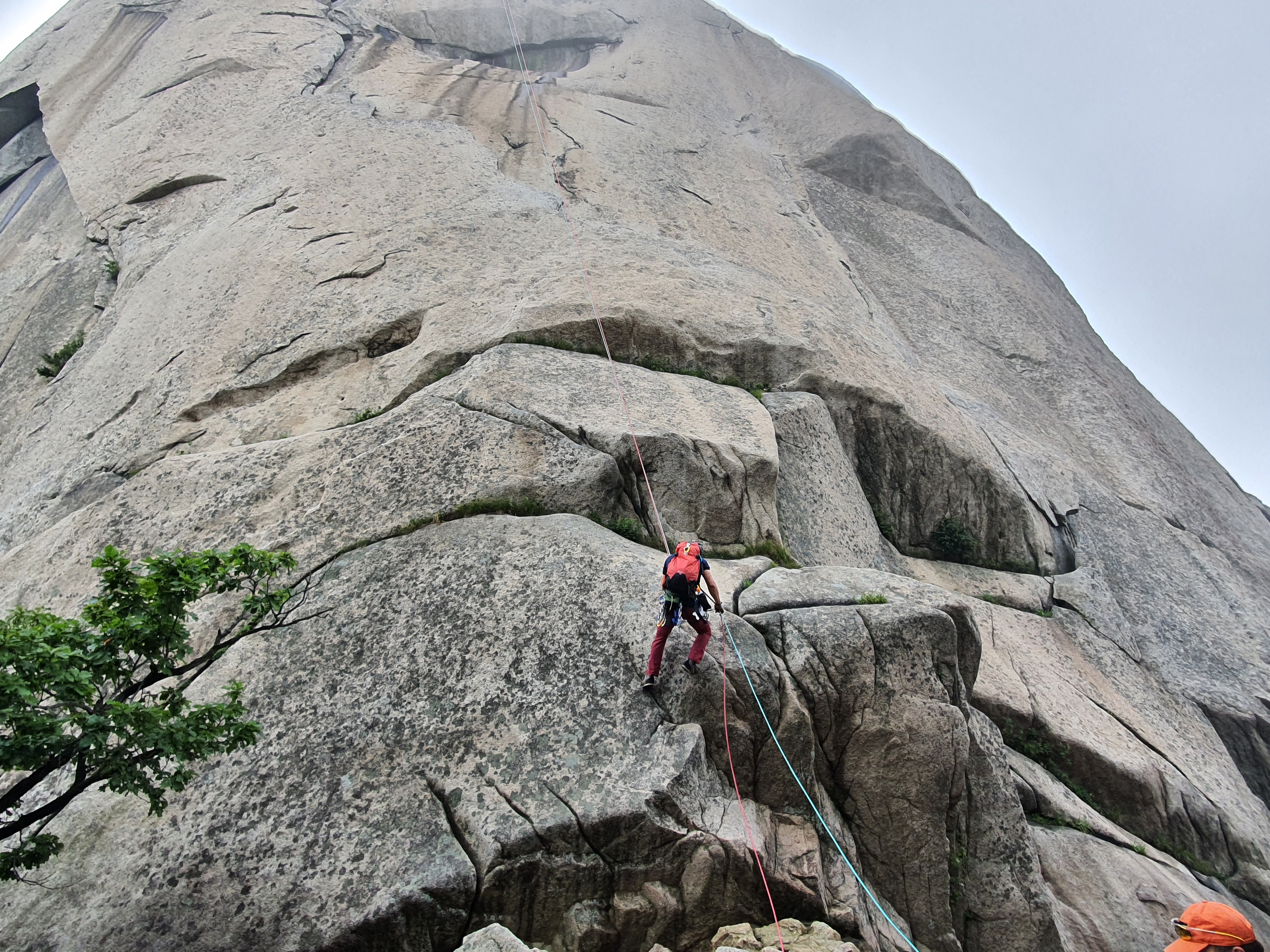 바로 아래쪽은 오버행이다. 공중에 붕~떠서 내려가는 기분은 클라이머들 만이 안다. 즉 한 마리의 새가 되는 것이다.
