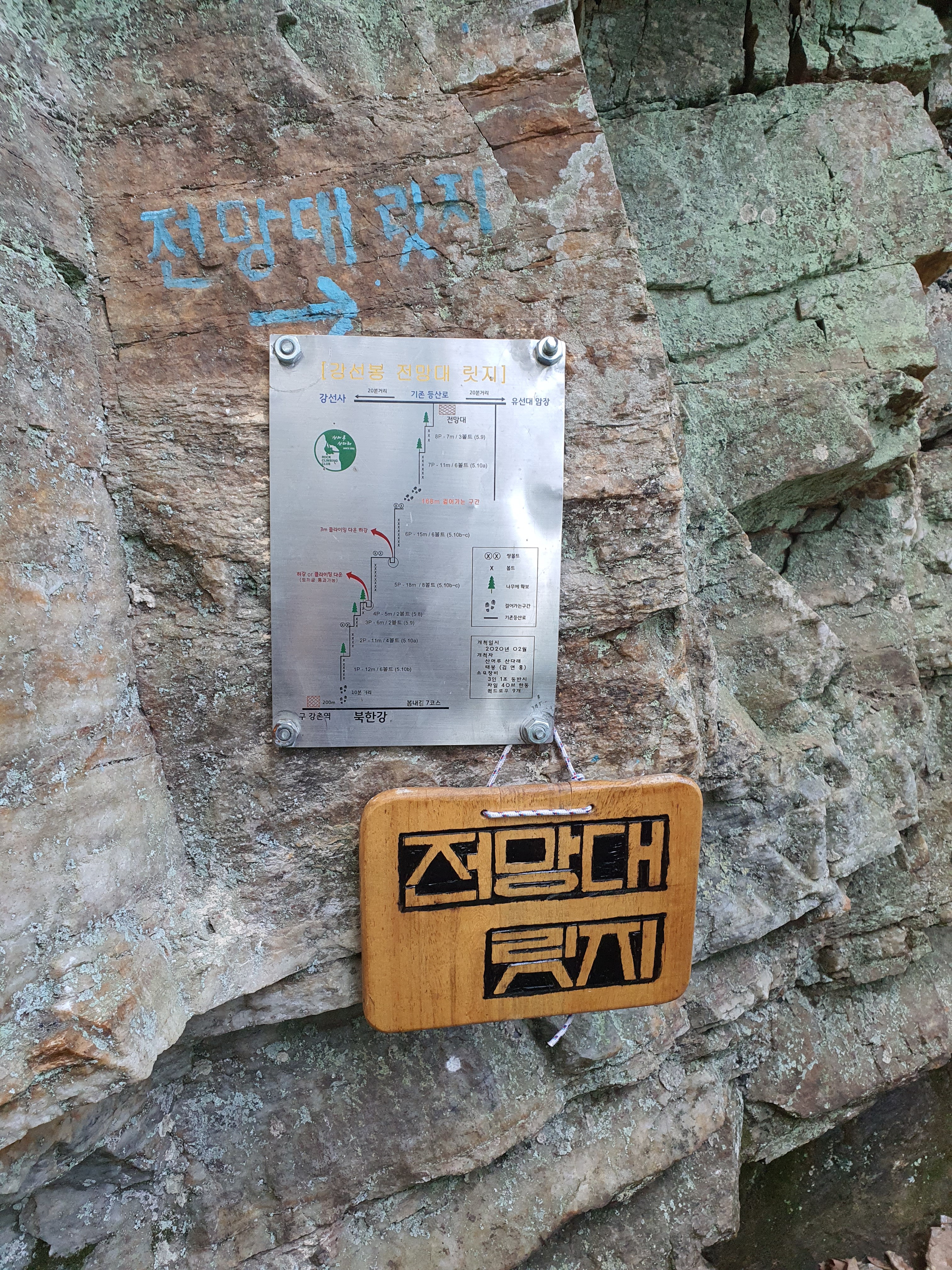 전망대 리지의 초입에 있는 리지 안내도 겸 개념도~난이도가 5.10~5.10c 까지 있는 꽤 짭잘한 리지이다.
