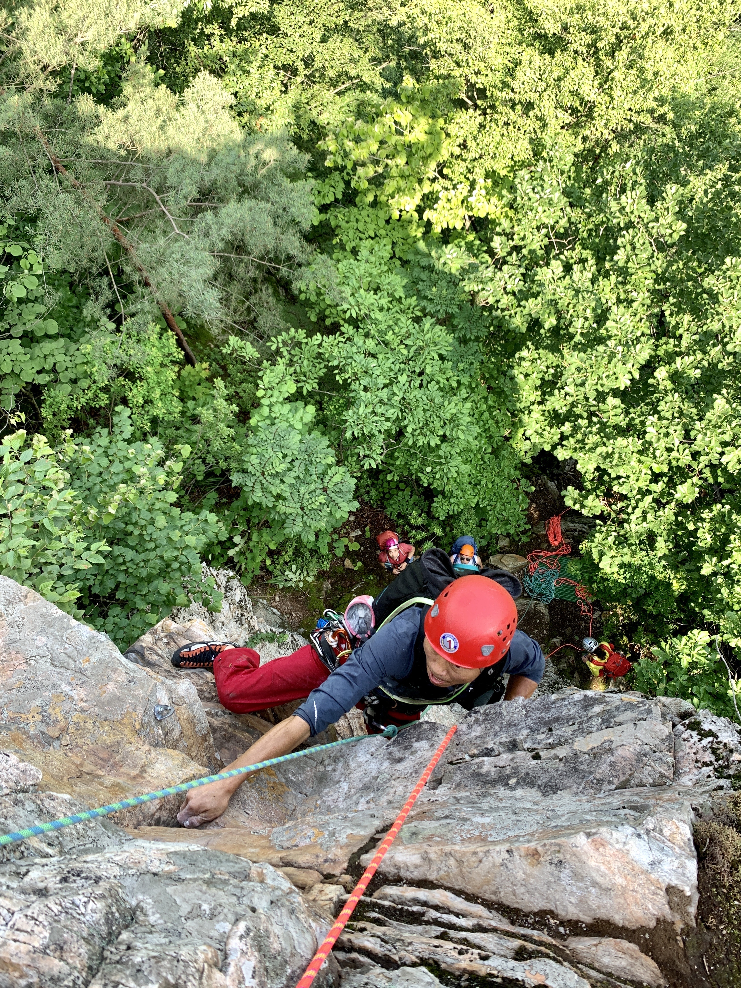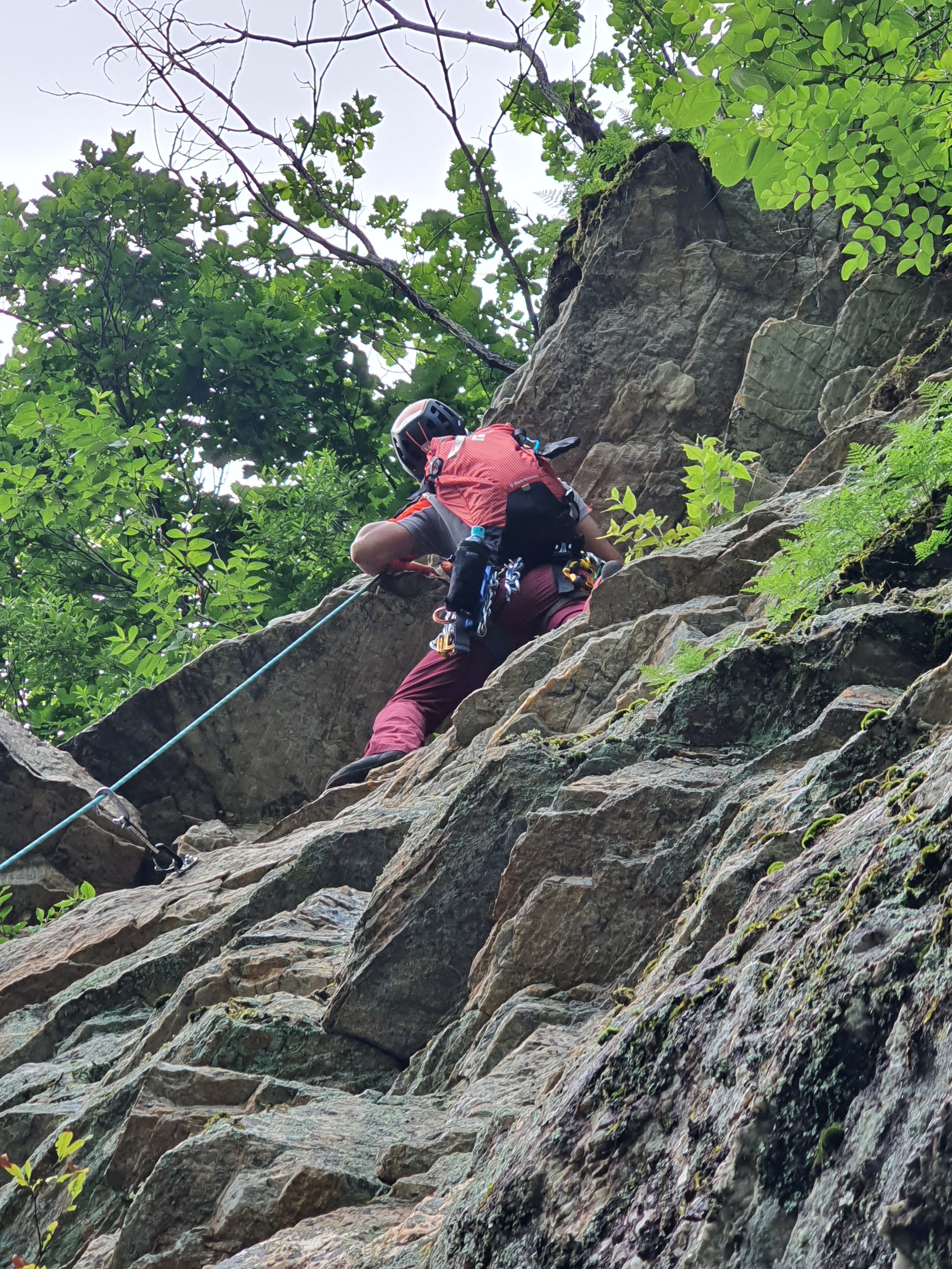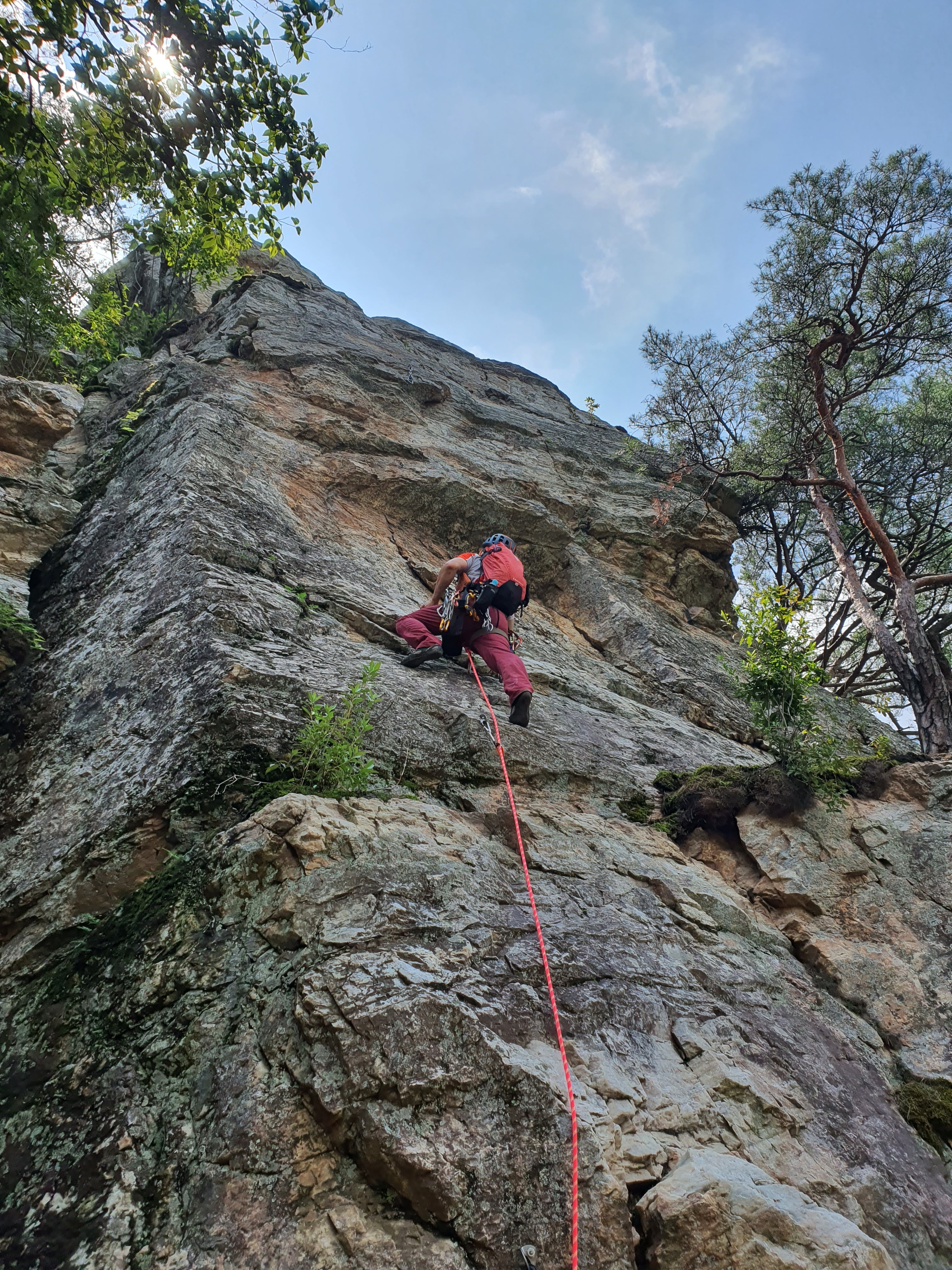 오늘의 선등은 창호가 맡았다. 첫 피치(5.10)도 홀드가 흐르는게 만만치 않아 보인다.