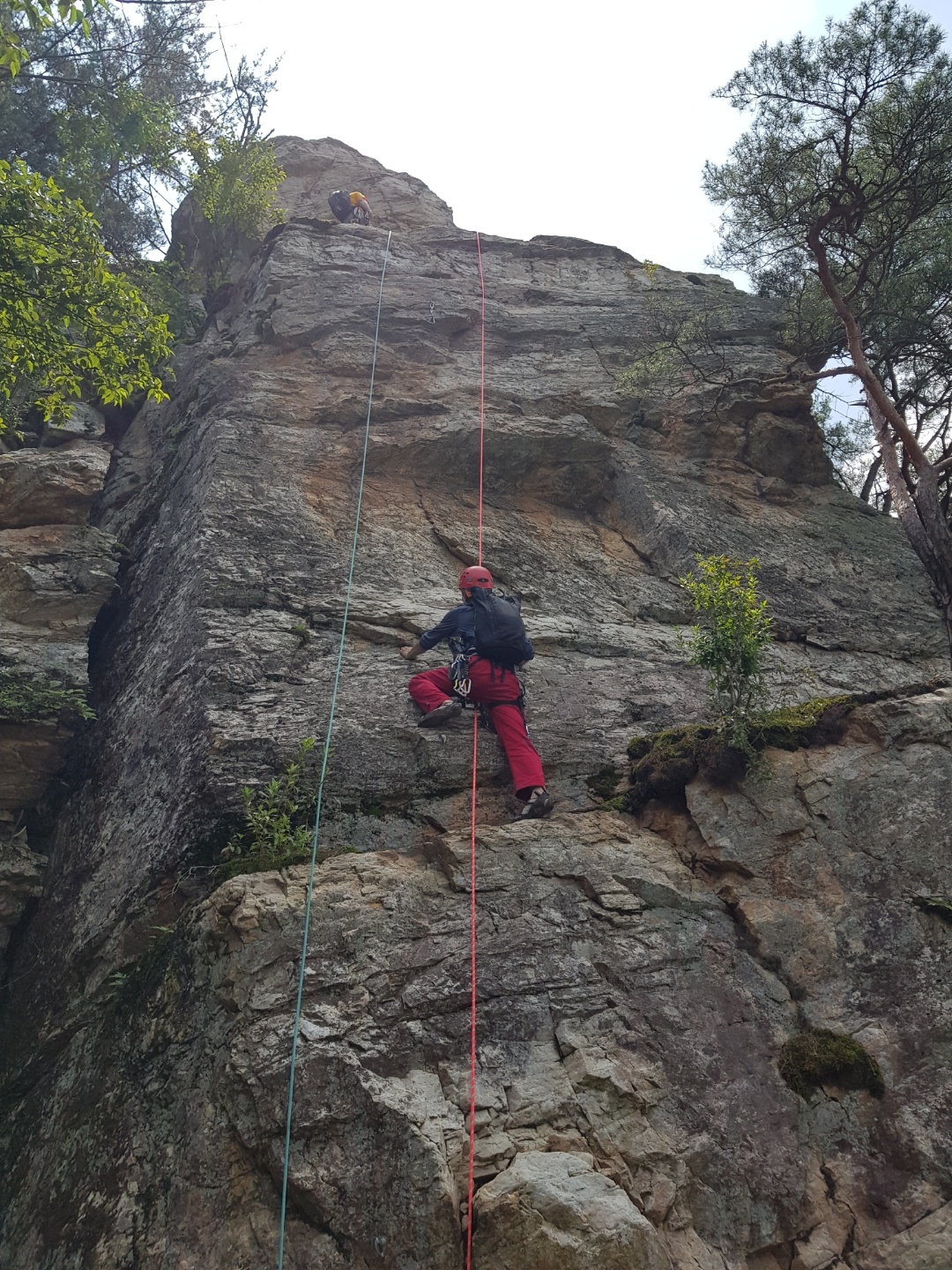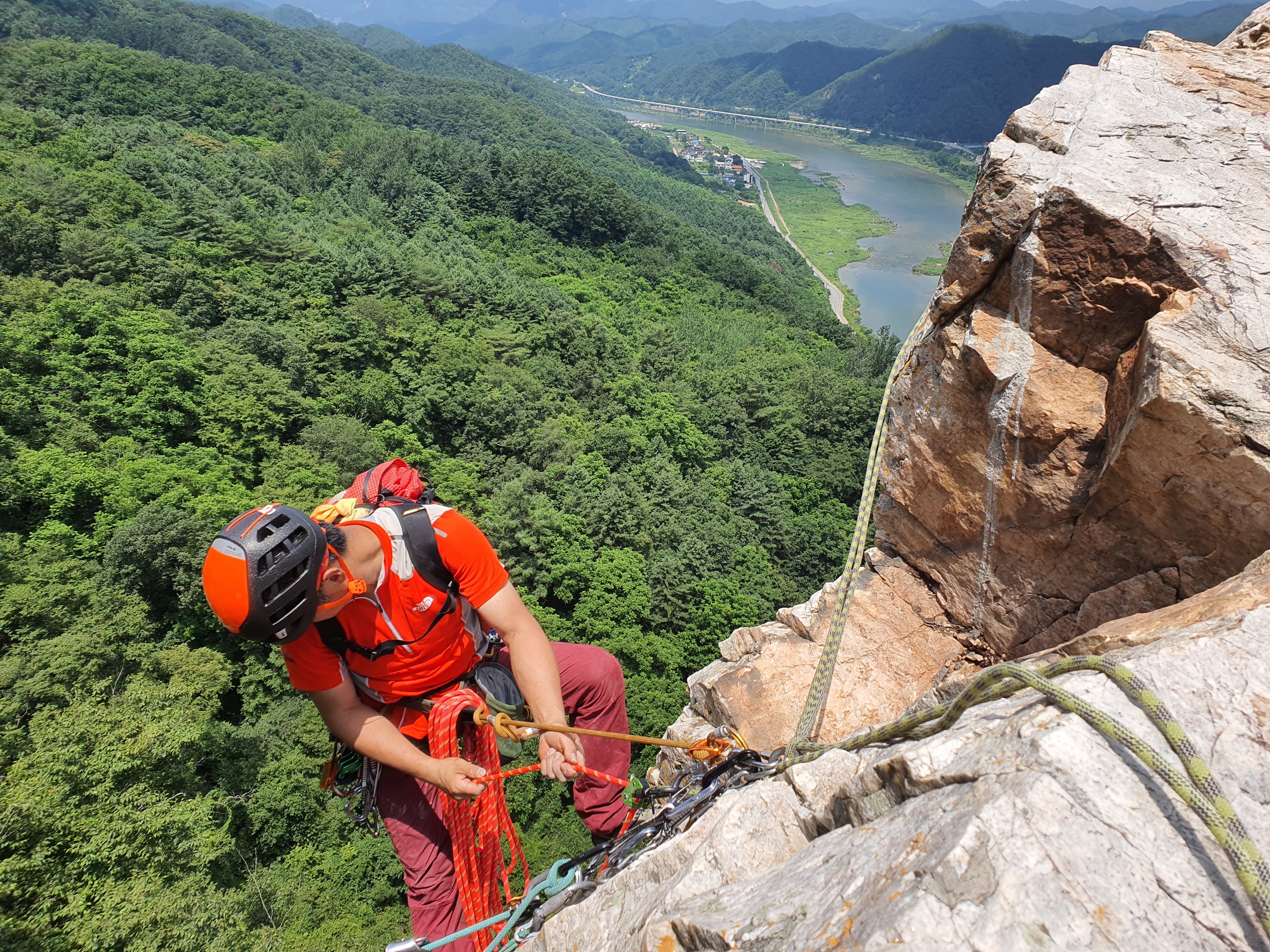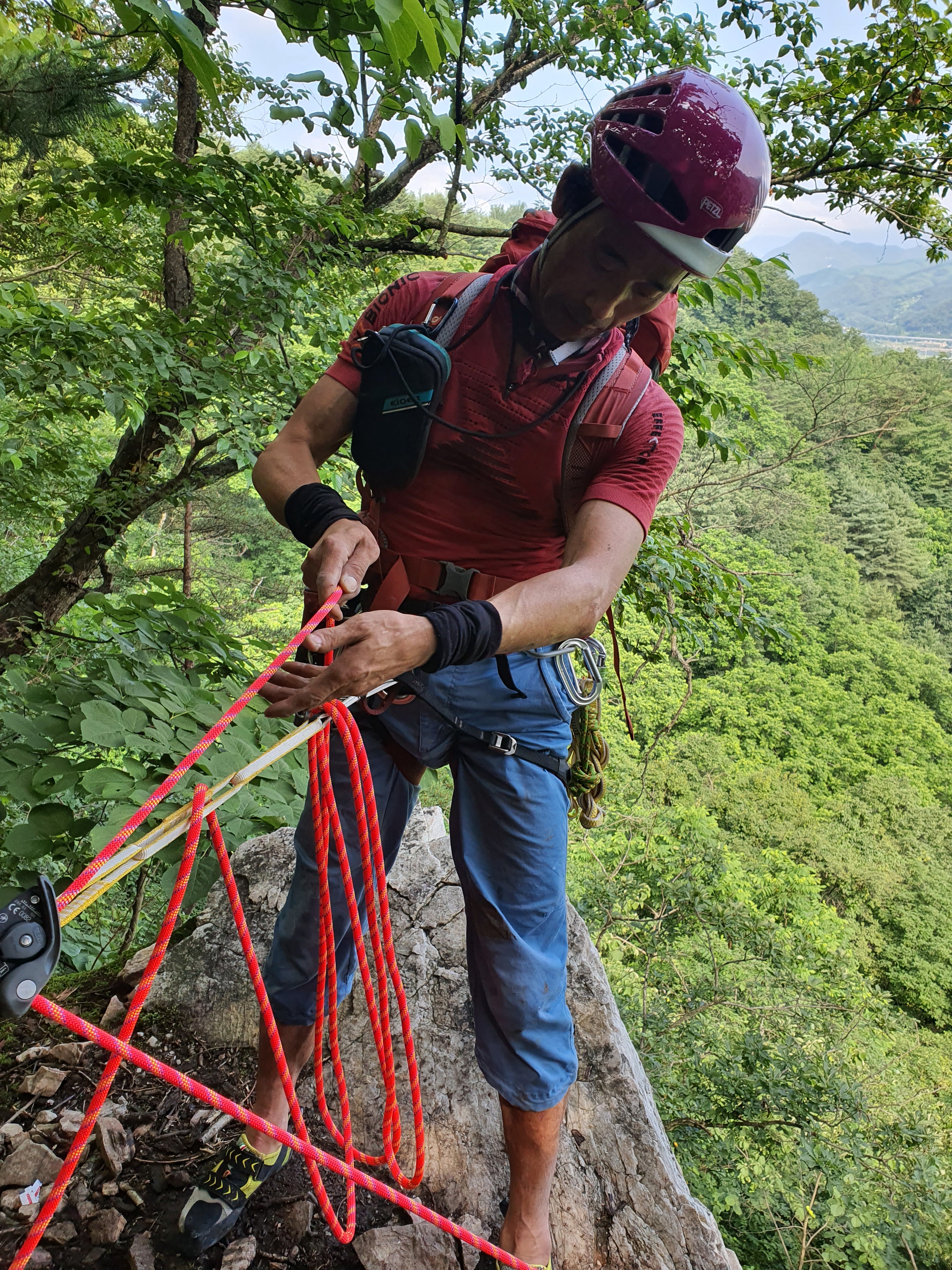확보중인 두 후배~ 줄 두 동으로 각자 따로 확보를 본다. 이러면 등반 속도가 빨라진다.