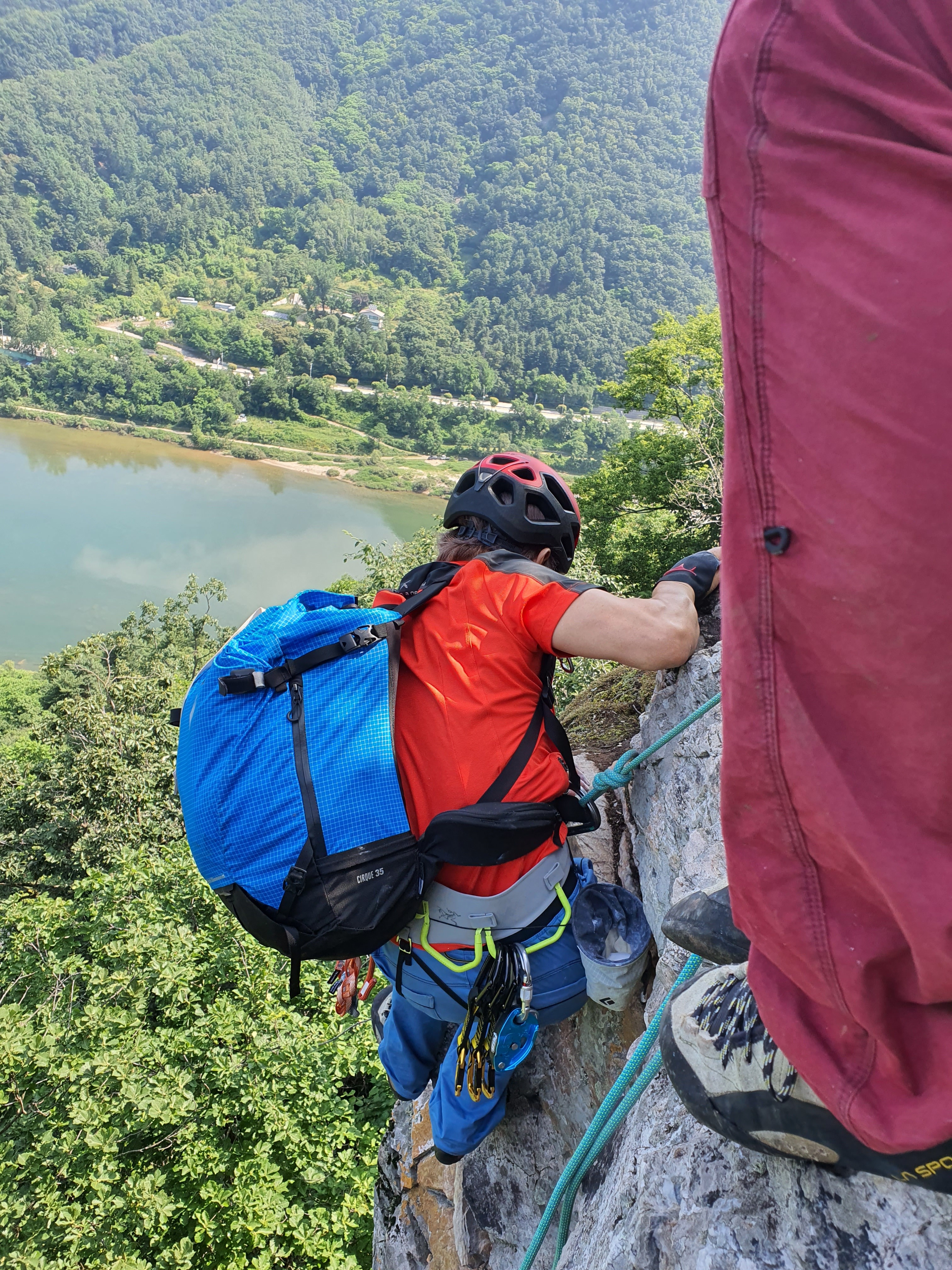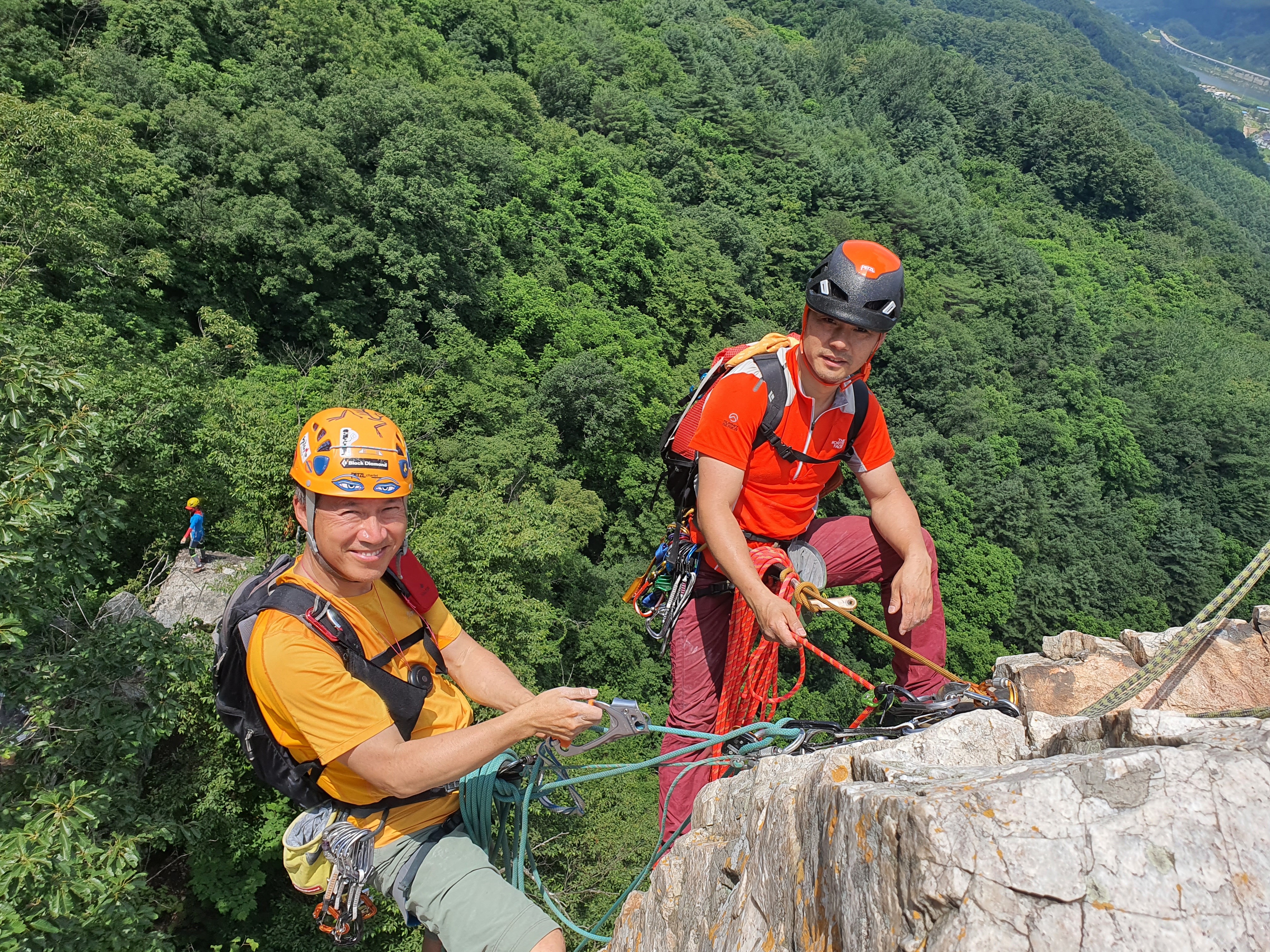 등반 속도가 빠르다 다음 피치에서 준비중인 두 후배.