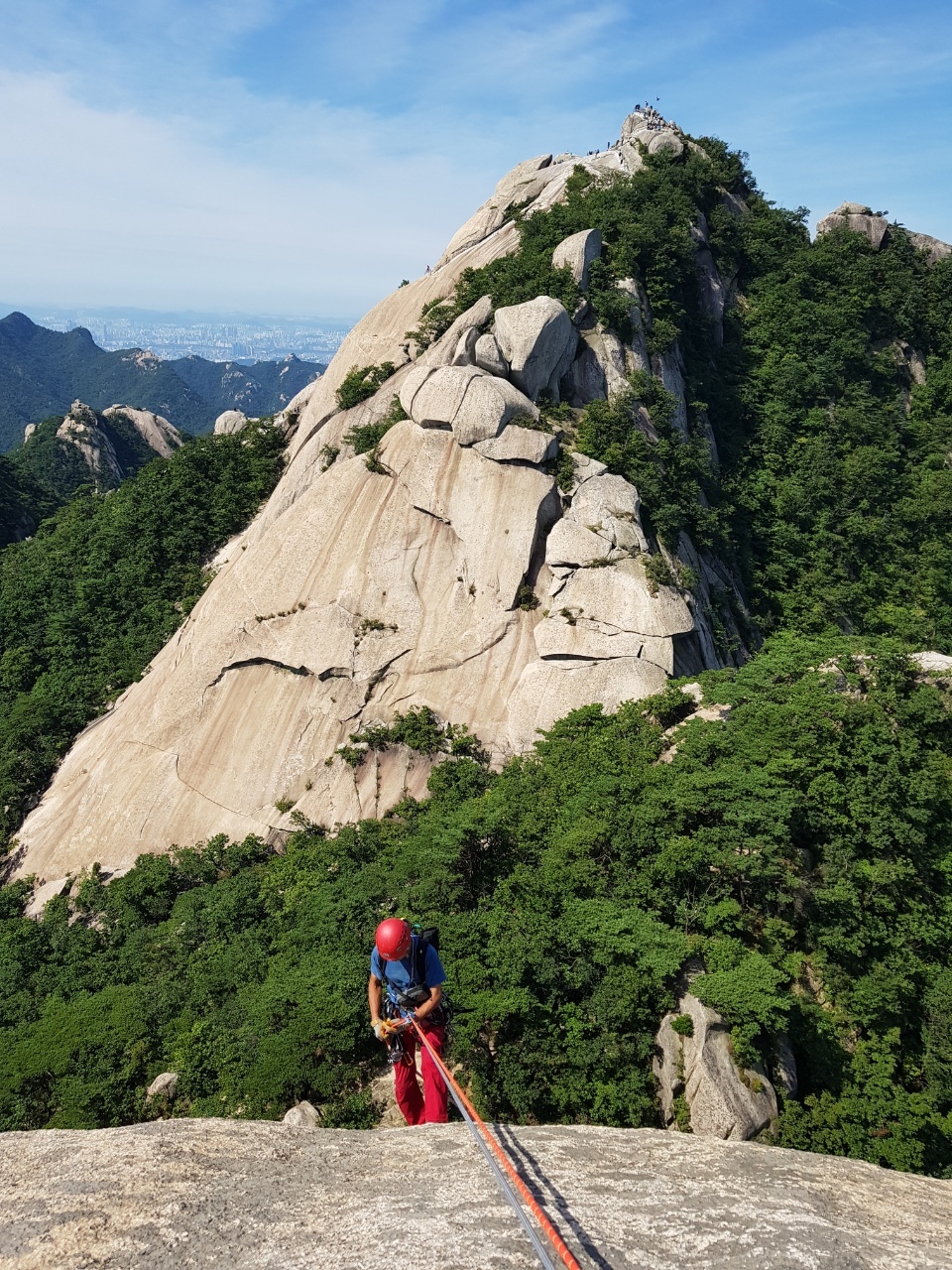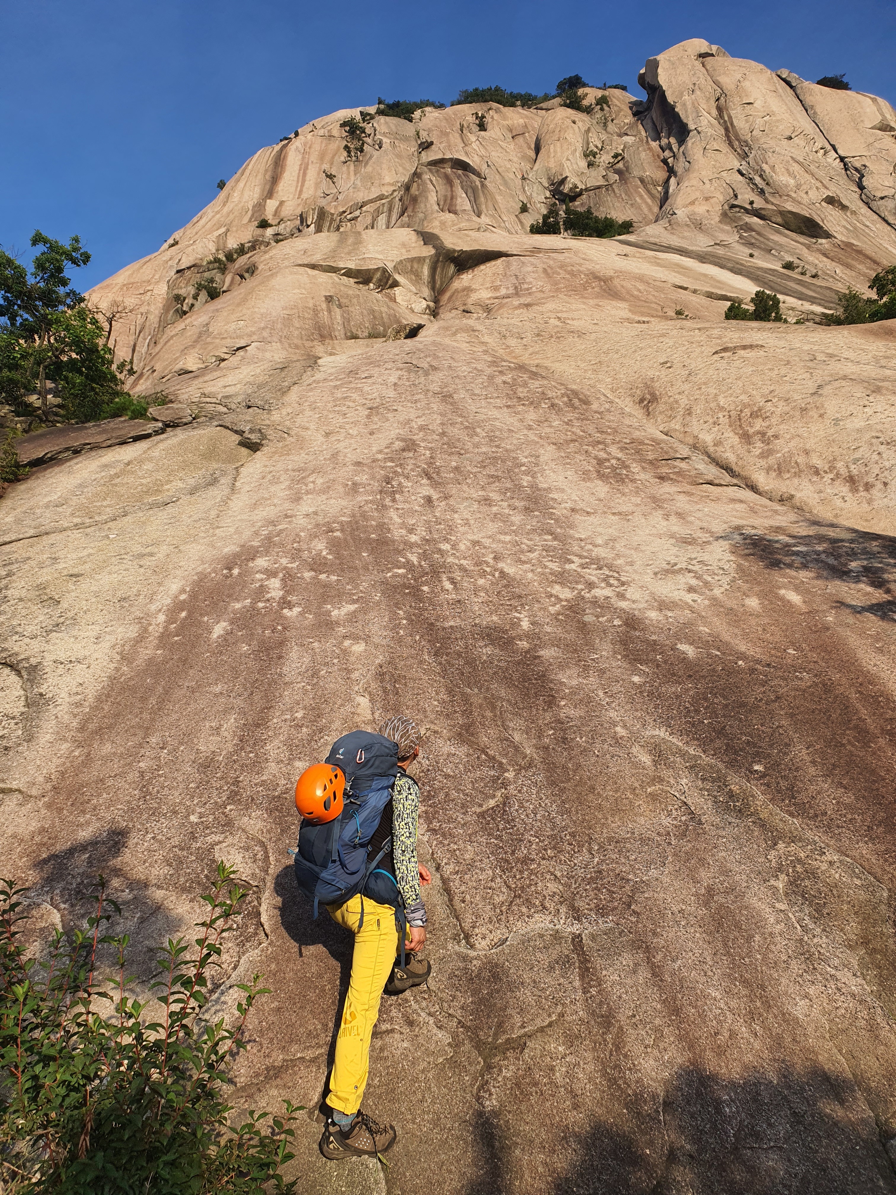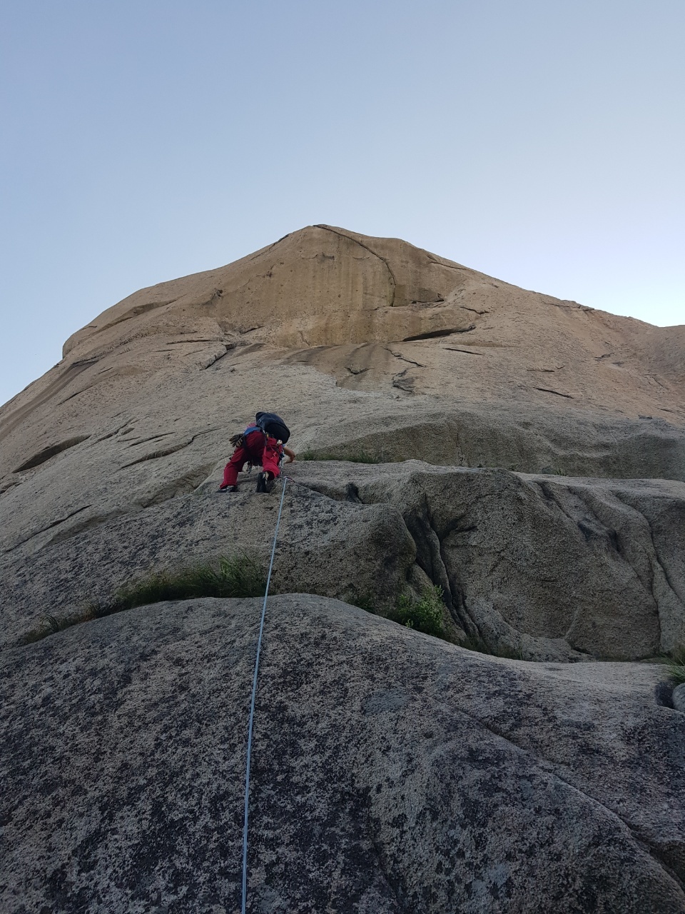 마지막 상단부의 쉬운 슬랩을 올라온다~ 이제 등반은 끝이 난 것이다~
