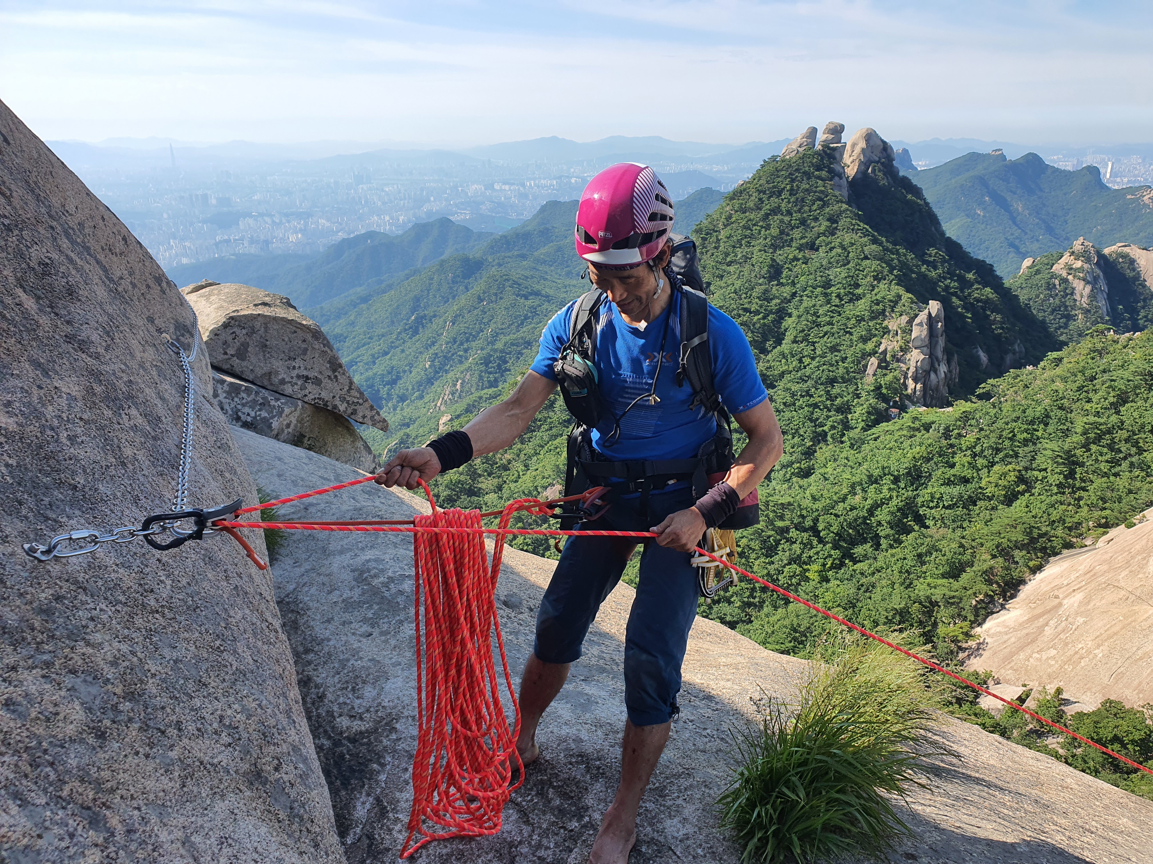 피하고 무엇보다도 거긴 하강 코스와 맞물리는 코스라 늦게 시작하면 로프가 마구 내려 오기 때문에 그래서