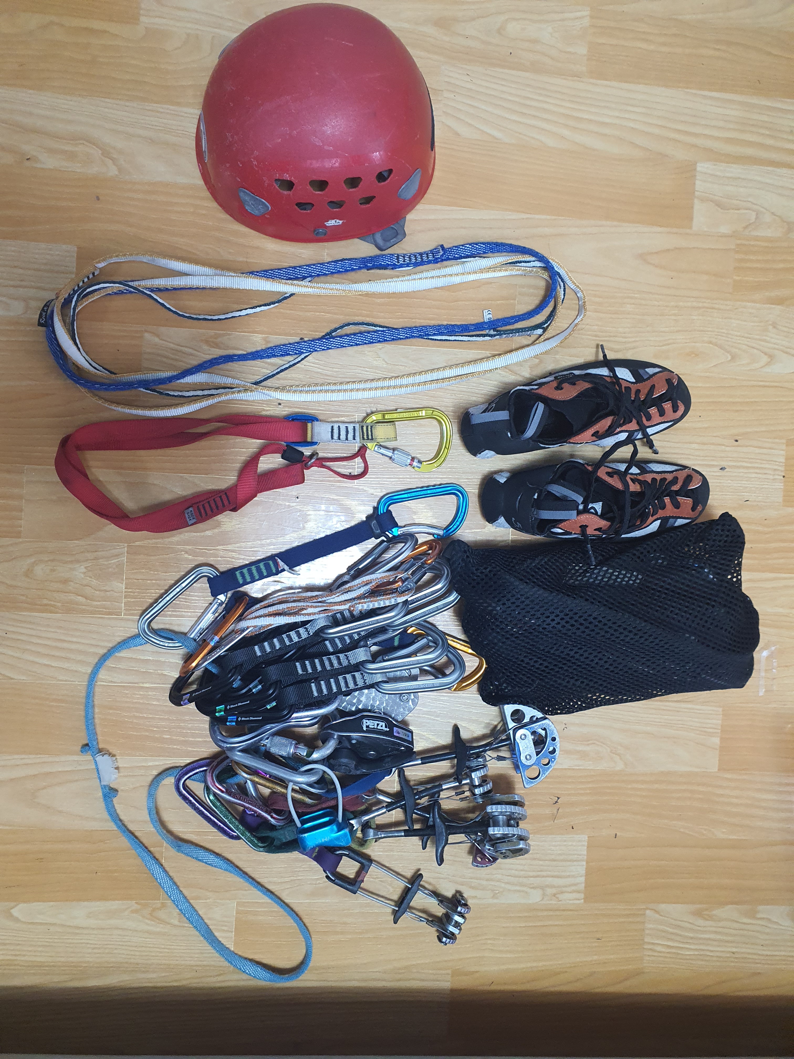 전날 설레이는 마음으로 준비한 나의 장비~ 비둘기길은 슬랩과 크랙이 혼재한 코스라 캠은 꼭 준비하여야 한다.