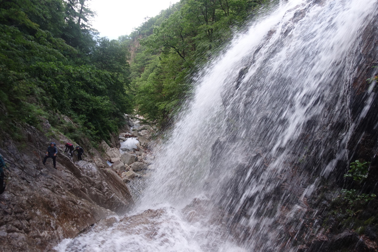 천장폭포 역시 오른쪽에 설치가 된 철근의 도움을 받으며 오른다.